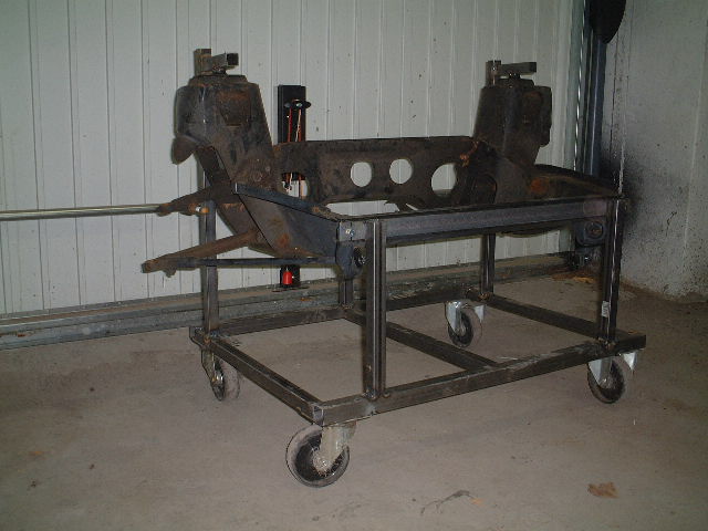 B)Ich habe mir eine Art Rahmen-Lehre gebaut, einen sogenannten "rolling jig", der mir nicht nur klasse zum Garagentransport dient, sondern auch die wichtigsten Punkte von den Aufhängungspunkten und dem Fahrwerk abnimmt!