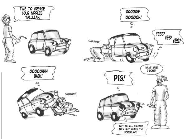 Also ich schmiere meinen Mini gerne ab. Von wegen beschissene Arbeit.....