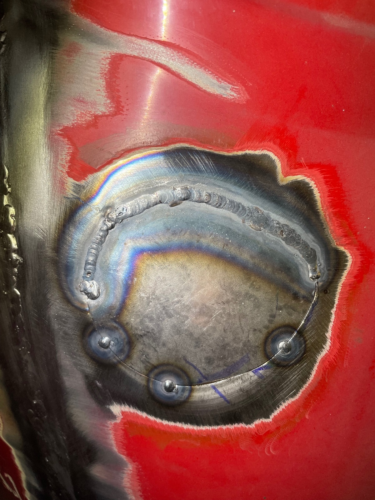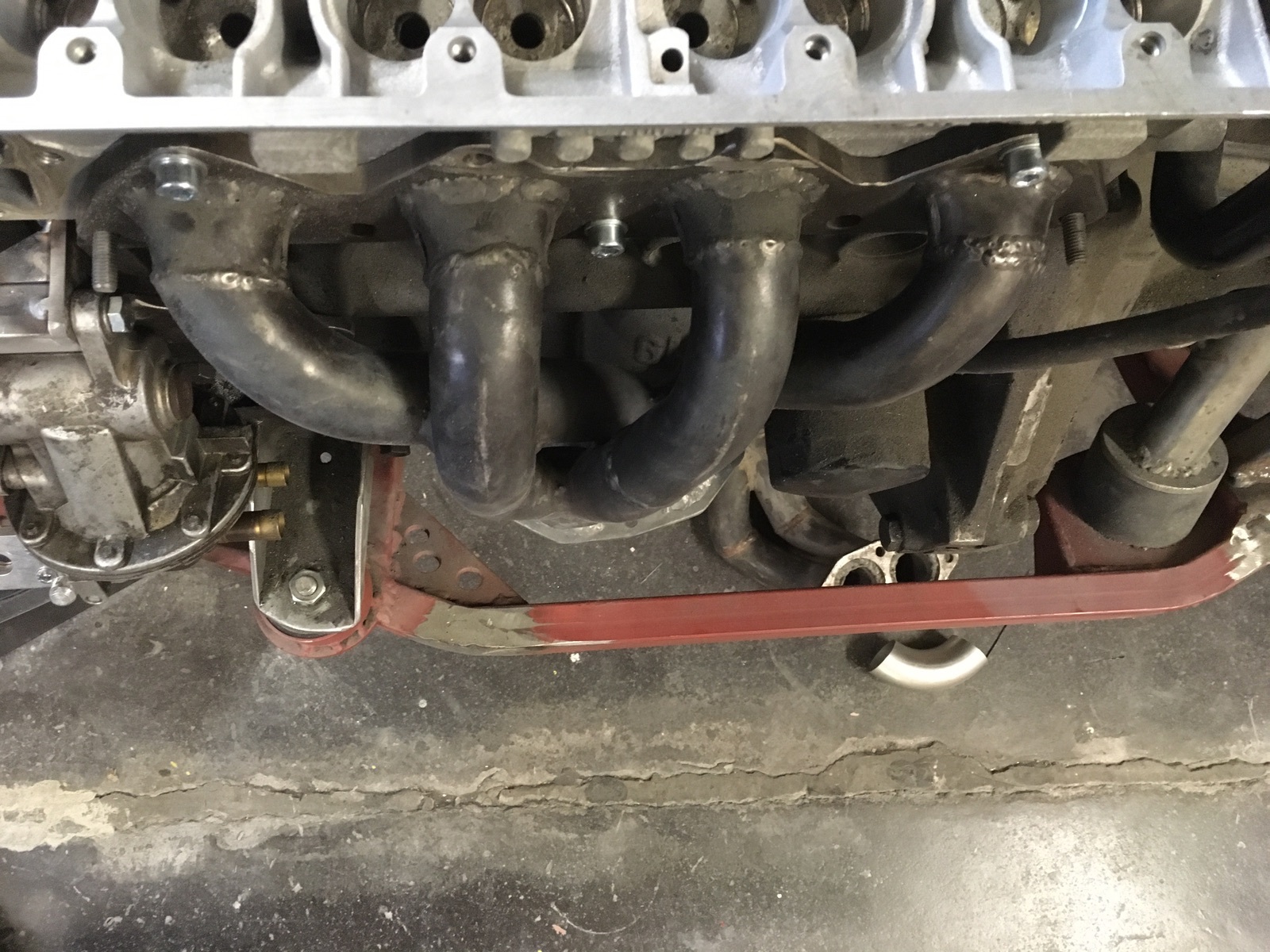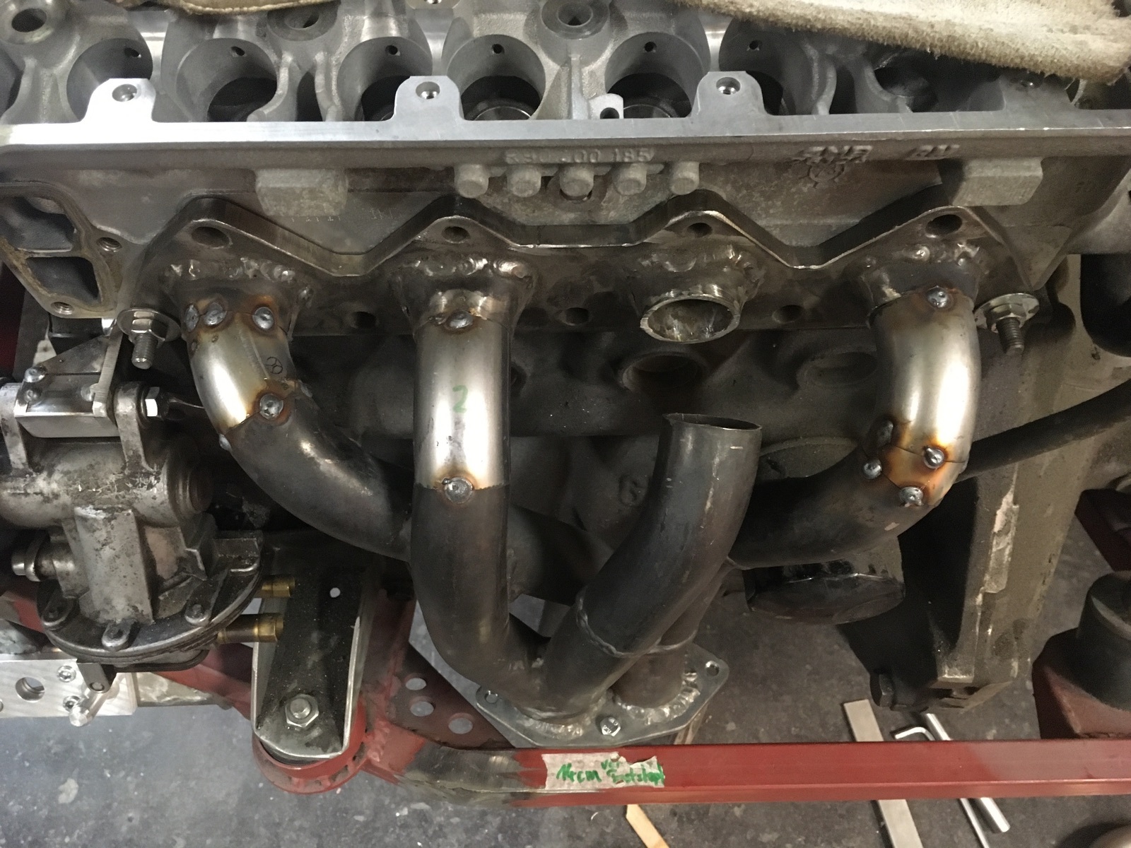 Der Krümmer war für minimalem Platzbedarf mit sehr engen Radien gebaut worden - nicht gerade ideal. Das kann man schöner machen, also aufgetrennt und Rohrbögen eingesetzt. Irgendwann möchte ich dann ohnehin den Krümmer dann nach Vorlage noch einmal in schön zu bauen.