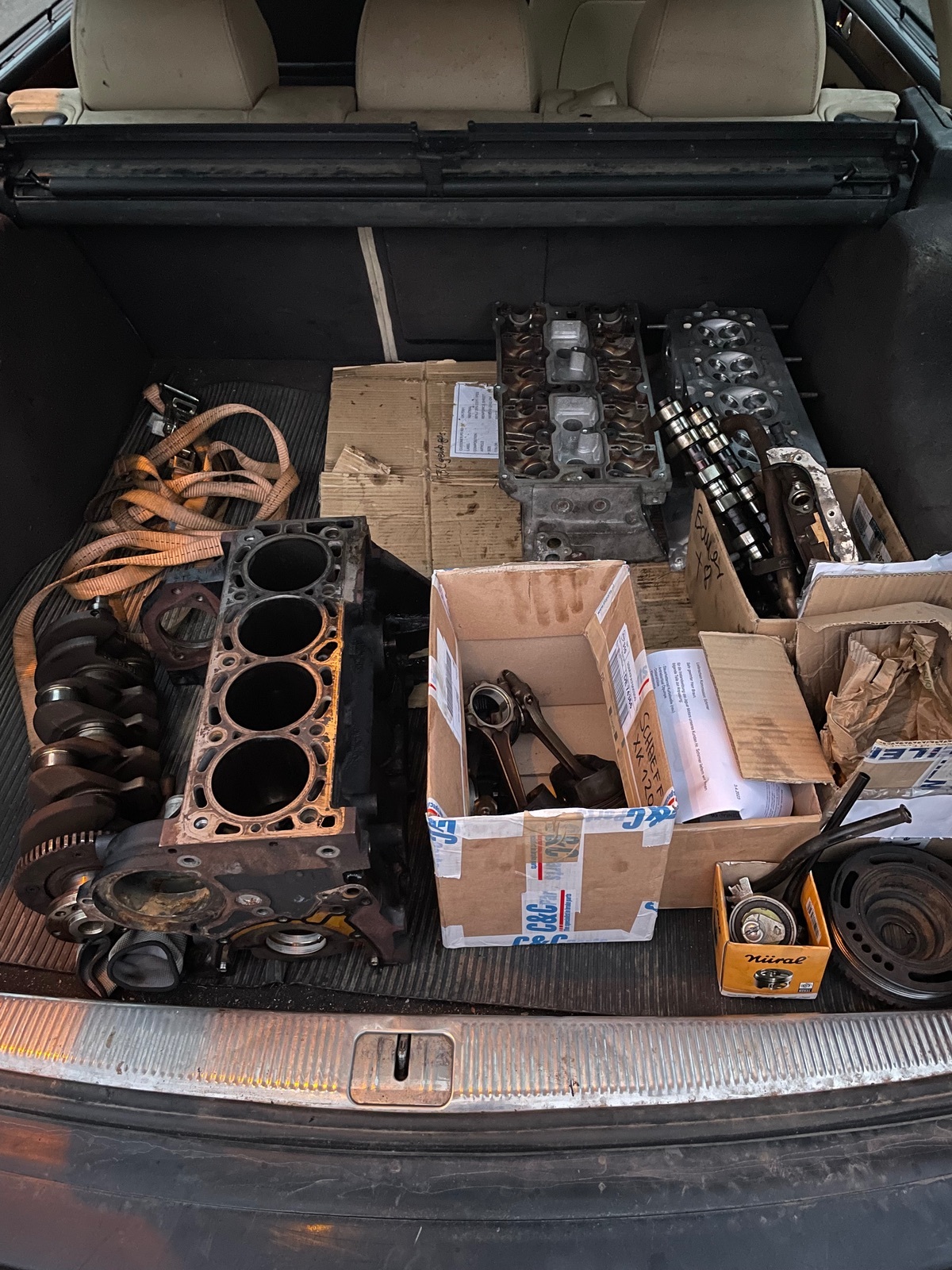 Da bei diesem Motor der Zahnriemen gerissen ist, gab es Schäden an den Ventilen und Führungen. Somit kommen Ventilführungen und Ventile neu. Block und Kurbeltrieb muss ich mir demnächst dann mal genauer anschauen und mit dem Bearbeiter die notwendigen Arbeiten besprechen.