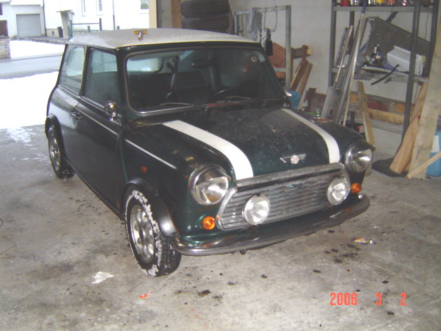 Und seit ein paar Tagen einen Mini Copper Racing Green mit Mpi Einspritzung den ich gerade wieder zu leben erwecken werde da er schon ziemlich gelitten hat am Rostfrass....