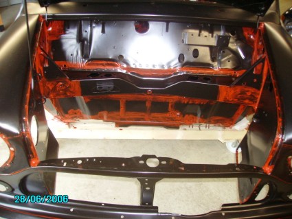 "Das Rote" was ihr an der Karosse seht ist Owatrol CIP, welches in alle Ritzen und Ecken laufen gelassen wird, um perfekt vor Korosion zu schützen.