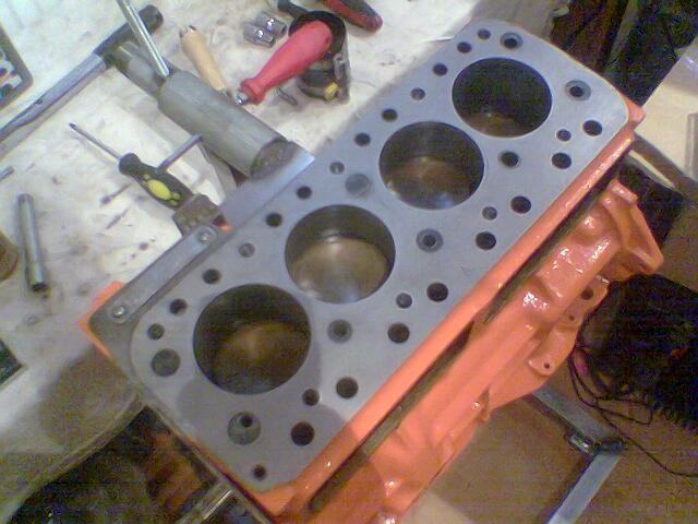 So, langsam geht es weiter ... Nachdem ich mir einen Motorständer geschweisst hatte, konnte ich endlich Problemlos KW, Nockenwelle und Kolben einbauen ... Motorplatte ist auch schon dran.
