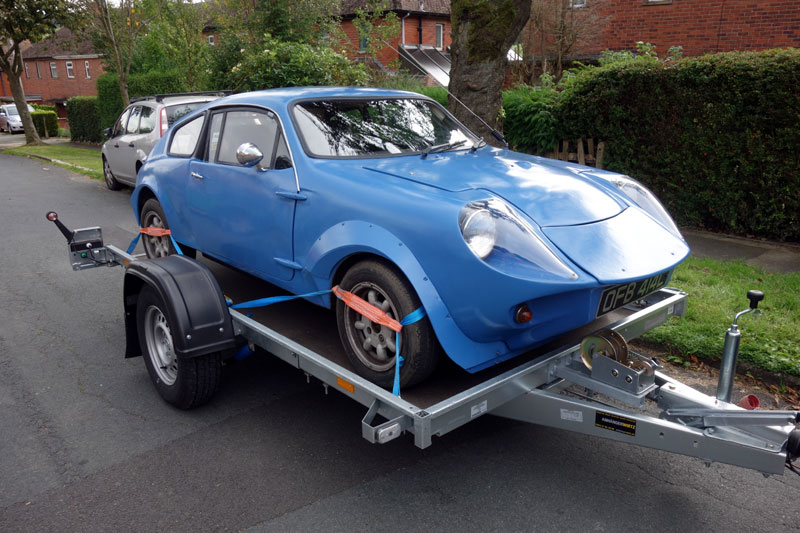 Auf Facebook wurde ein Bild gepostet mit nem blauen Plastikauto auf dem Anhänger....