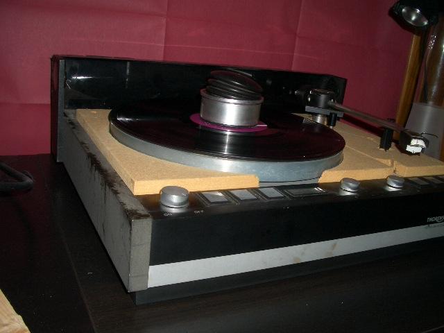 Auf dem Plattenspieler ist ein Studiotonarm drauf und der Oberhammer ist die Vakuumpumpe.