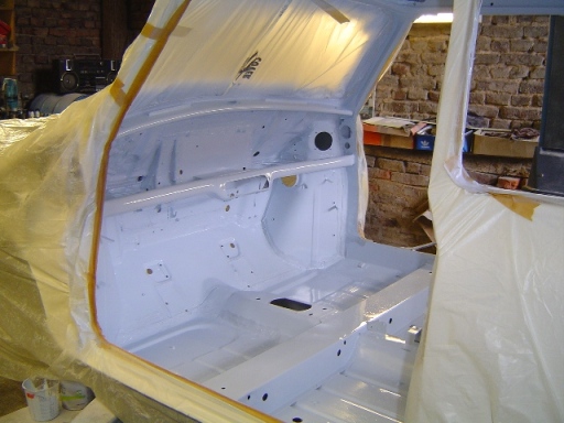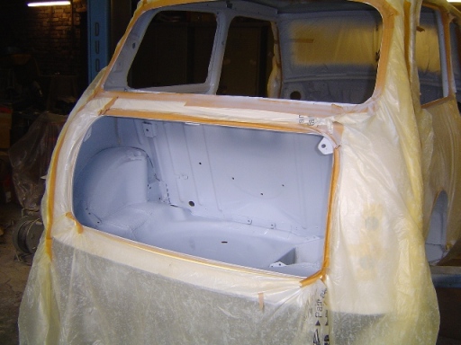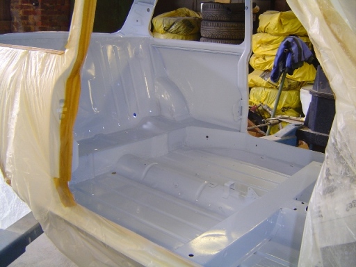 heute gabs dann die erste Farbe für Innenraum, Kofferraum und hinteren Unterboden.
