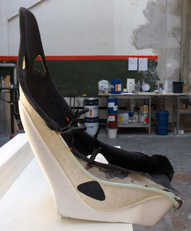 Auf den Bildern ist der Sitz einmal vor der Modifikation und einmal mit geänderter Kontur im Bereich der Oberschenkel zu sehen. Bilder vom fertig bezogenen Sitz kann ich sicher in der nächsten Zeit nachliefern.
