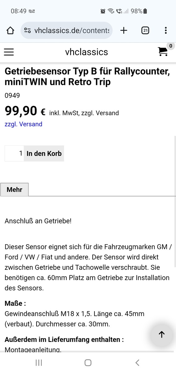 • Darum geht's mir nicht, ich brauche nur eine geschicktere Lösung für den Sensor und da käme Tachoanschluss oder Getriebeanschluss in Frage...