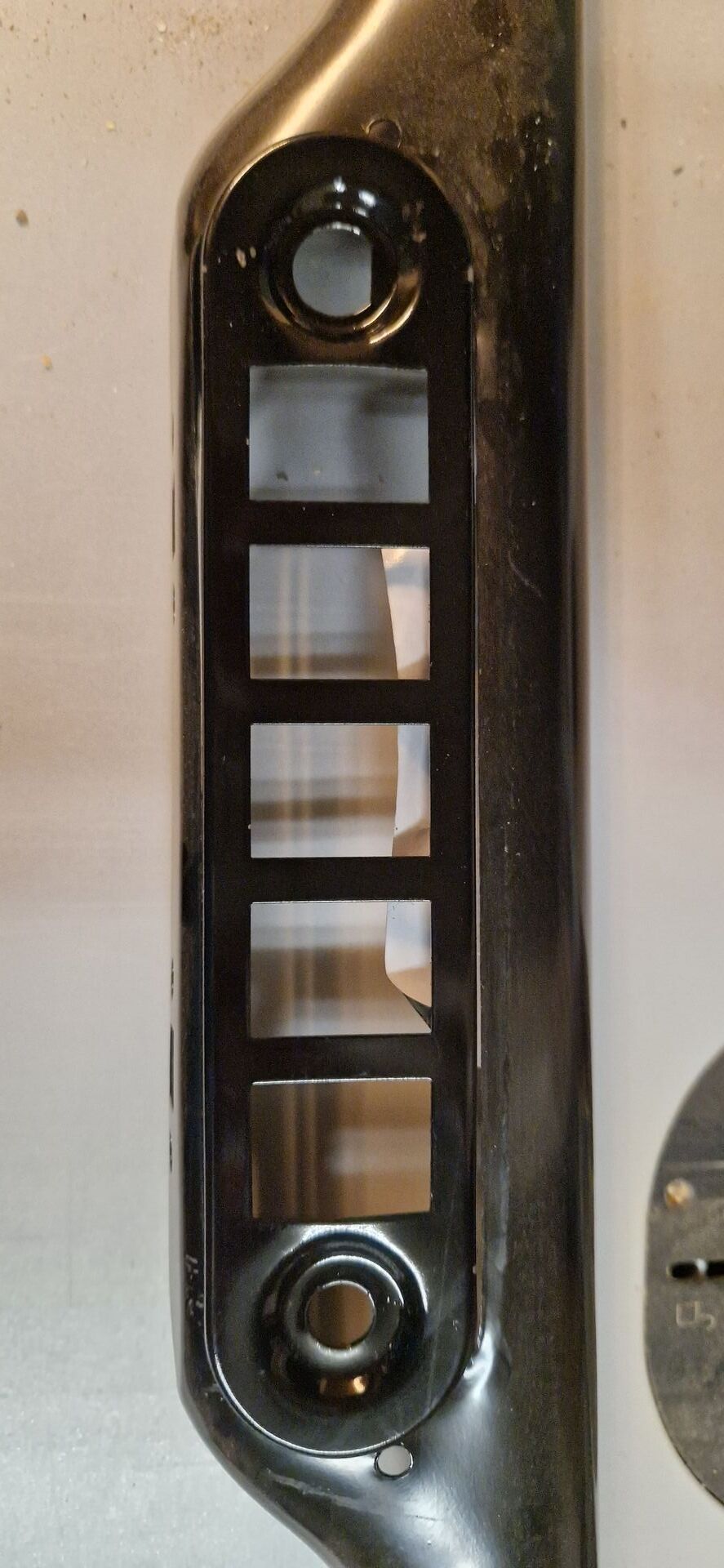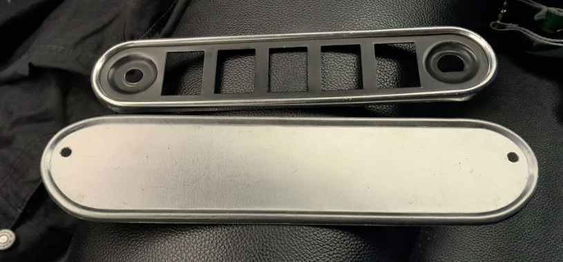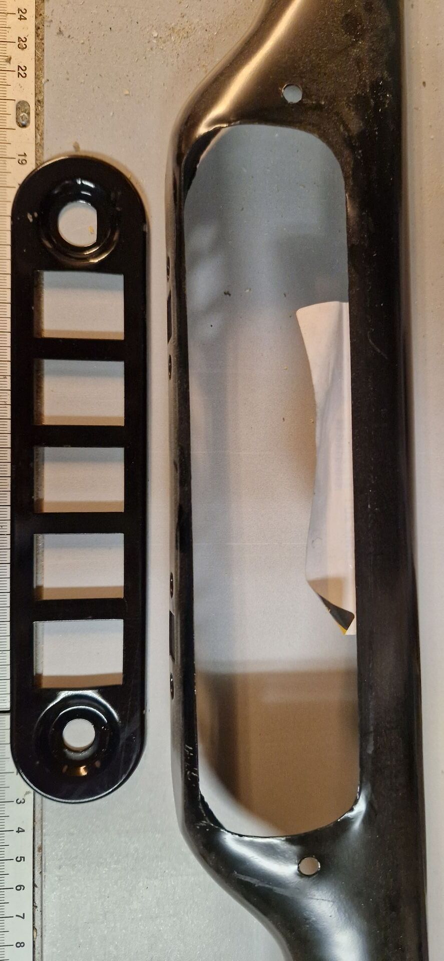 Das ist sie in der Tat, hier zum Vergleich eine Blende zur Montage auf den Prallschutz, unten eine nachgedengelte für Van/Pickup (Mk2?), da durfte ich ein originales als Vorlage nehmen (Besten Dank nochmal).