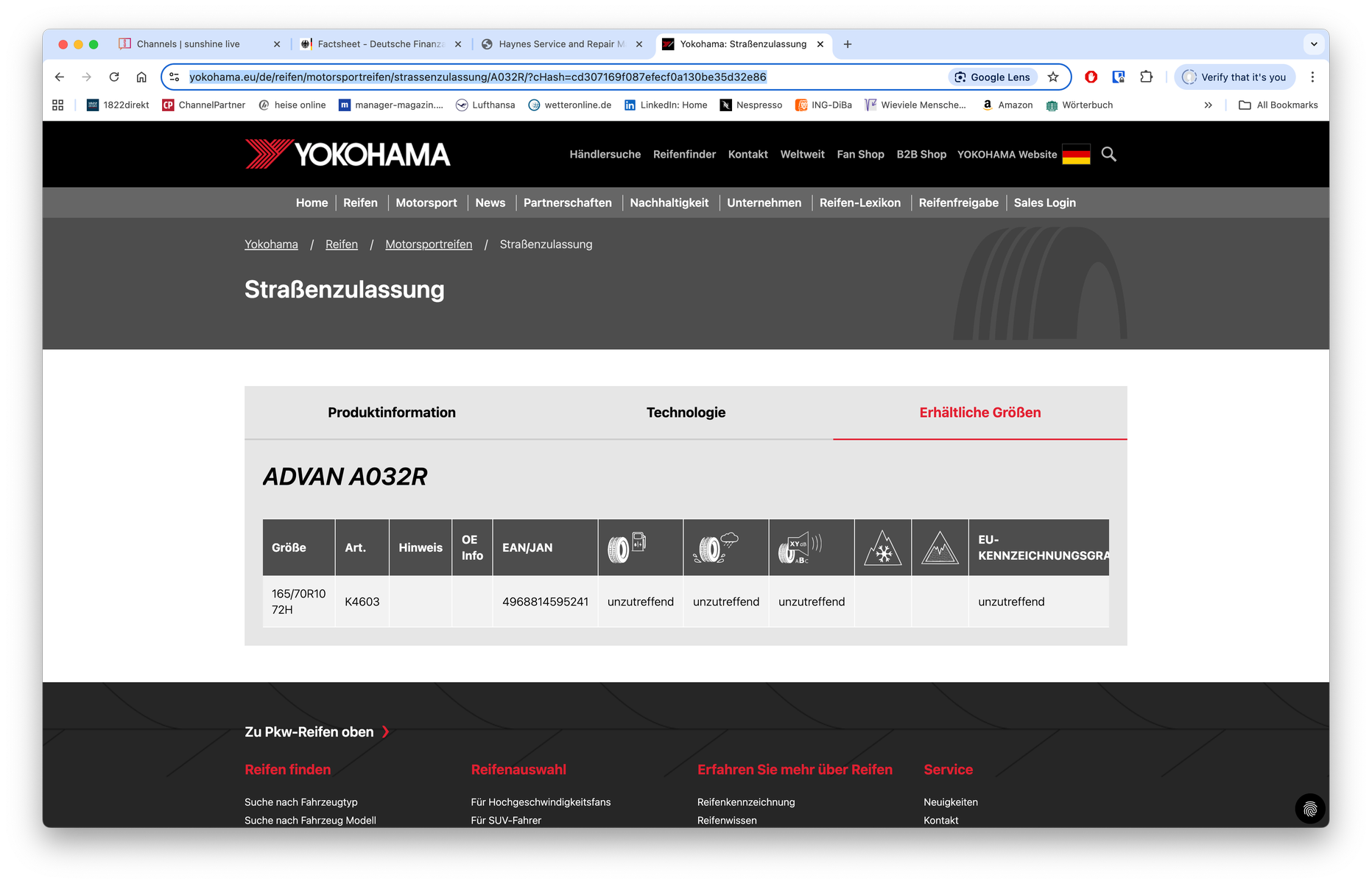 Ich mache jetzt mit der Reifendiskussion einfach 'mal hier weiter. War ja wirklich im falschen Forum. Ich habe jetzt 4 A032 bestellt, bein gespannt. Yokohama sagt, dass es keine EU KEnnzeichnung gibt, wäre ja schön, wenn das falsch ist. Dann ist die ganze Diskussion aus meiner Sicht egal. Melde mich.