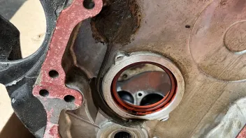 wenn der Kühler raus ist, dann kann ich die Motorlagerung machen, die Tachowelle anschließen und besagte Steuerkettendeckeldichtung erneuern. Denn da ist es mehr als feucht….