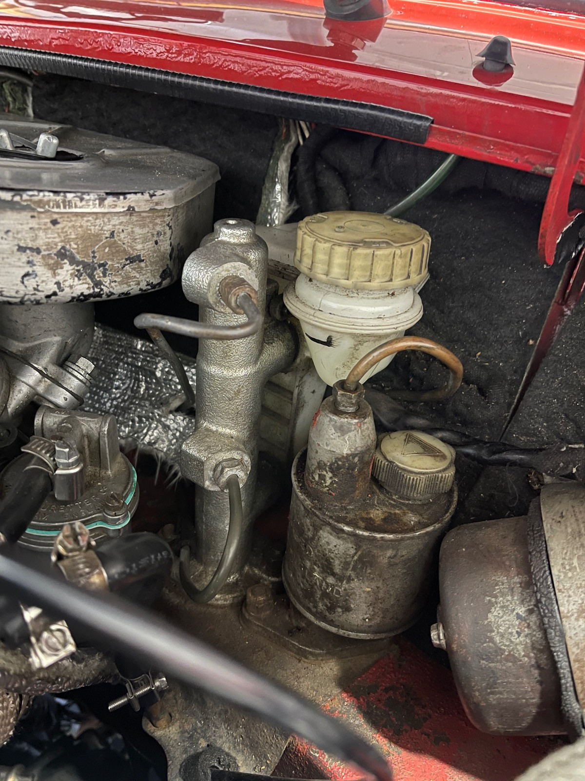 Also ob das Gestänge vom Pedal zum bremszylinder nicht existiert (hab aber mal hingelangt…ist da und bewegt sich nach oben)