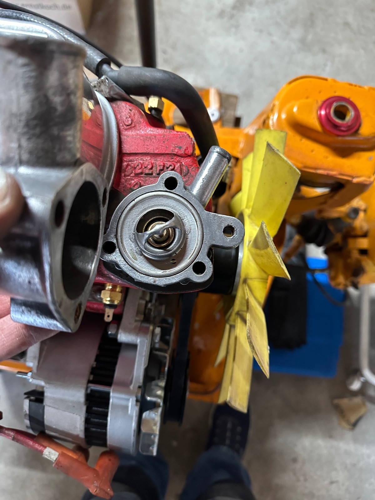Ich schon wieder🙈. Das Thermostatgehäuse. Wäre es so richtig montiert? Also mit 2 Dichtungen muss das ja zusammen, es ist ein 88 grad Thermostat, an dem unteren Gehäuse ist jetzt ein Loch was ich verschließen möchte, mit Schraube und Kupferring zB. Da war ja vorher der Fühler oder Schalter für den Zusatzlüfter. Da ich aber jetzt einen anderen Kühler nehme ( Cara5000) geht das hoffentlich auch so. Frage: ist der Thermostat so richtig montiert?