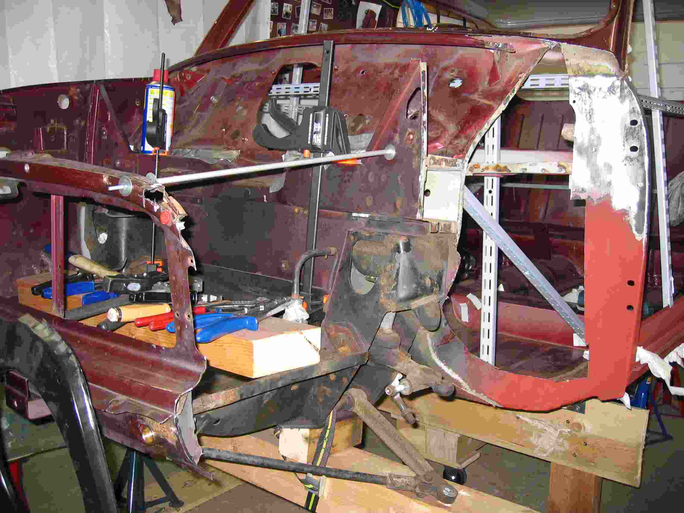 Nun ist das alte Blech auch schon runter, die Karosse stabilisiert, und eigentlich sollte am Wochenende der erste Innenkotflügel eingeschweißt werden.