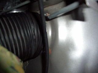 Dann Mini aufgebockt (geflucht über zu fest angezogenene Radmuttern und das Felgenschloß...Reifen drangelassen..;). So, nach einigen Yogaübungen konnte ich Foto 2 schießen. Der obere Schlauch geht doch in die "Frischluftdüse (also innen im Armaturenbrett) oder?
