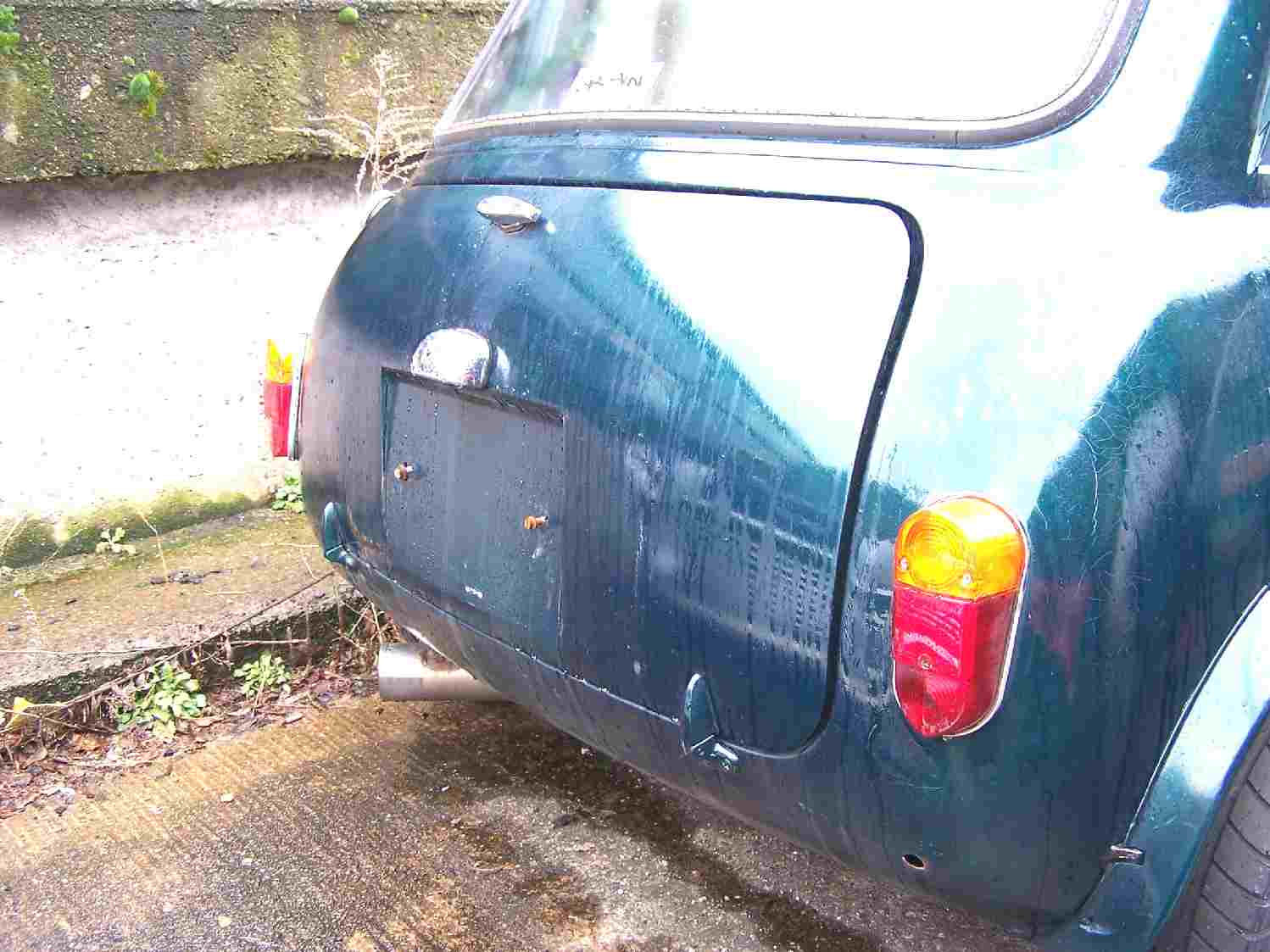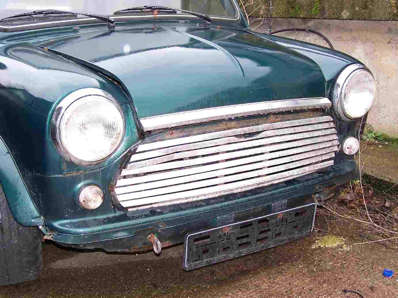Der Mini hat einen kleinen Rempler an der Fahrertür. Die Außen und Innenschweller sind schon fachmännisch entfernt worden.