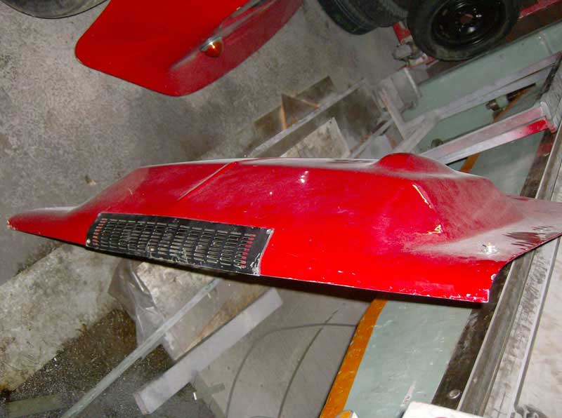 Nochmal ein Schnitt durch die unterschiedlichen Bauabschnitte der Motorhaube. Dabei sieht man auch, dass die Einspritzung etwas mehr Luft vertragen könnte (es waren Scheuerspuren der Kabel an der Haube erkennbar).