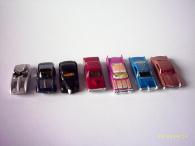 2x corvette,ford coupé,thunderbolt,cadillac,bonneville,riviera (leider überpinselt)