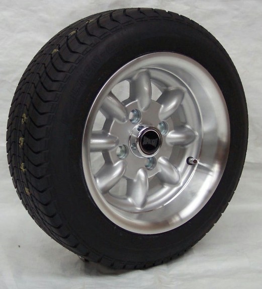 Satz original Minilight Felgen mit Falken 165/60 12 mehr als halbes Profil, also noch lange fahrbar. Felgen sind in British Racing Green.