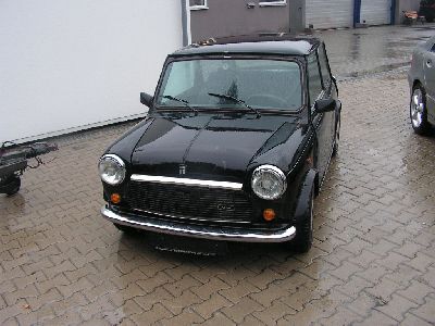 Mehr oder weniger sporadisch haben wir mal nach Autos gesucht - ich logischerweise nach Stuttgarter Spätbarock; sie nach Minis oder auch 2 CV. Eine kurze Überprüfung der Sachlage vor dem letzten Besuch bei meinen Schwiegereltern offenbarte einen Mini Mayfair, schwarz, Bj. 11/90 in unmittelbarer Nähe der Heimat meiner Frau. Besuche bei Eltern/Schwiegereltern haben eh immer einen recht faden Beigeschmack; also die Gelegenheit genutzt und dort vorgefühlt. Verkäufer ist ein Händler im ländlichen Gebiet Bayerns (um das mal höflich auszudrücken) - von sich aus hat er gleich angeboten, das Auto auf die Bühne zu stellen usw. Wie zu erwarten sah die Realität etwas ernüchternder aus als die Bilder im Internet - aber nach der Probefahrt war es ganz offensichtlich um meine bessere Hälfte endgültig geschehen. Soweit es meine Möglichkeiten zugelassen haben, habe ich die mechanische Seite überprüft; Rost - ganz klar; die Fahrertür schaut unten garnicht gut aus, der Scheibenrahmen wirft an einer Stelle auch Blasen, der Schweller auf der Fahrerseite ist am Übergang zum Kotflügel mit kleinen Durchrostungen gesegnet - aber dafür ist er günstig zu haben; 1.900 Geld (also rd. 3.800 DM in richtiger Währung) ist das Angebot des Verkäufers. TÜV und AU sind realtiv neu; mit 85 Tkm ist der Motor für meine Begriffe nicht viel gelaufen.