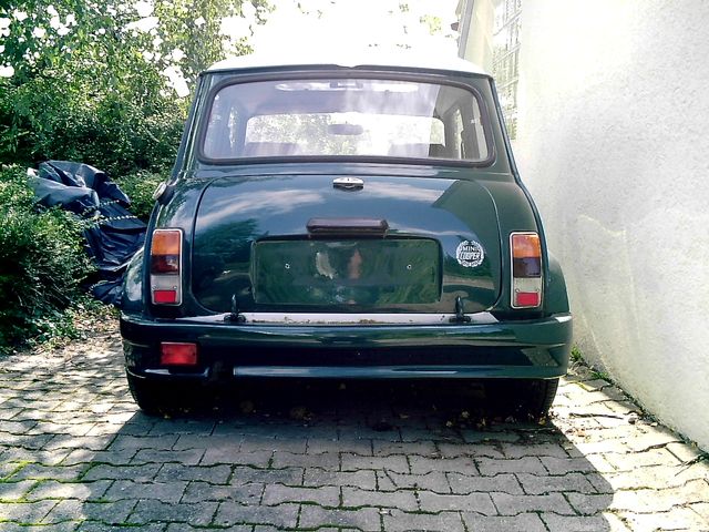 -Bereifung: Sommer 175/50 R 13 auf Revolution-Felgen 7x13, Winter 145/70 auf original Cooper-Alus