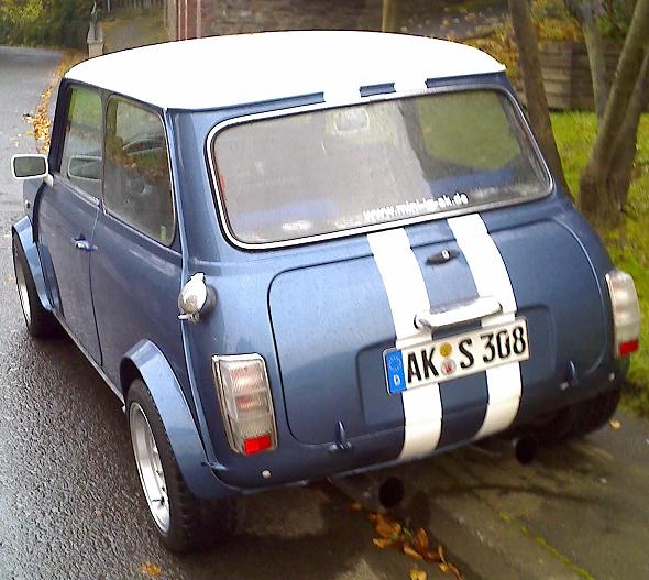 Beschreibung: Werde je nachdem meinen mini verkaufen. übern winter will ich ihn eh nicht fahren (viel zu schade) und nüchsten sommer werd ich dann wohl meinen honda-umbau fertig haben. habe ihn im juli diesen jahres überholt, zylinderkopfdichtung und alle anderen dichtungen erneuert, roststellen entfernt (austauschbleche) und neu lackieren lassen. habe dabei auch die stossstangen entfernt und 7jj breite 13" Smoor felgen montiert. innenraum sieht gut aus, mit mitteltacho und drehzahlmesser (plasmabeleuchtet). kofferraum hatte nie rost!!