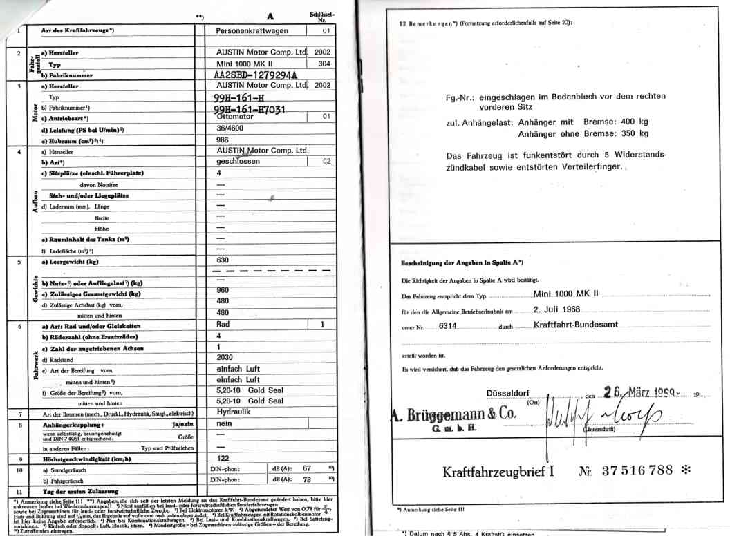ich lasse mich gerne eines besseren belehren, jedoch ging ich bisher schon der annahme an es wäre einer. ich könnte ja mal den brief einscannen und einstellen! die alte karosse hat EZ 71 und die neue EZ 69. Die Eintragung des Kraftfahrtbundesamtes zur Typengenehmigung im brief ist jedoch von 68.