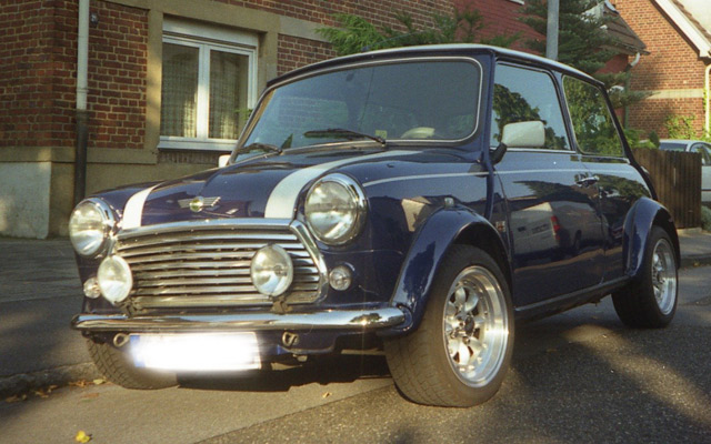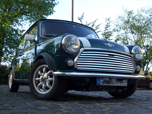 Ich habe einen 91er Vergaser-Cooper (in BRG - (CIMG1181_1.jpg) siehe Anhang) mit original Verbreiterungen, HI-LOs (will den Mini noch etwas tiefer legen) und 12" Felgen.