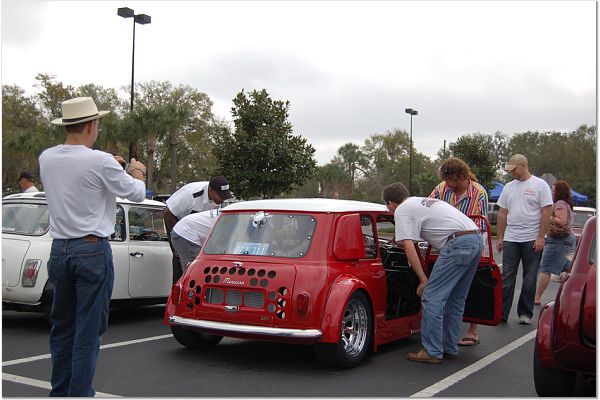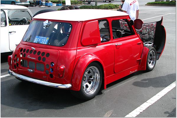 haste auch mehr Pic,s von dem deseamt und gechoppten mit dem Interessanten Heckklappemechanismus der auf dem letzten Bild rechts von dem V8 Mini steht......in braunrotmetallic....