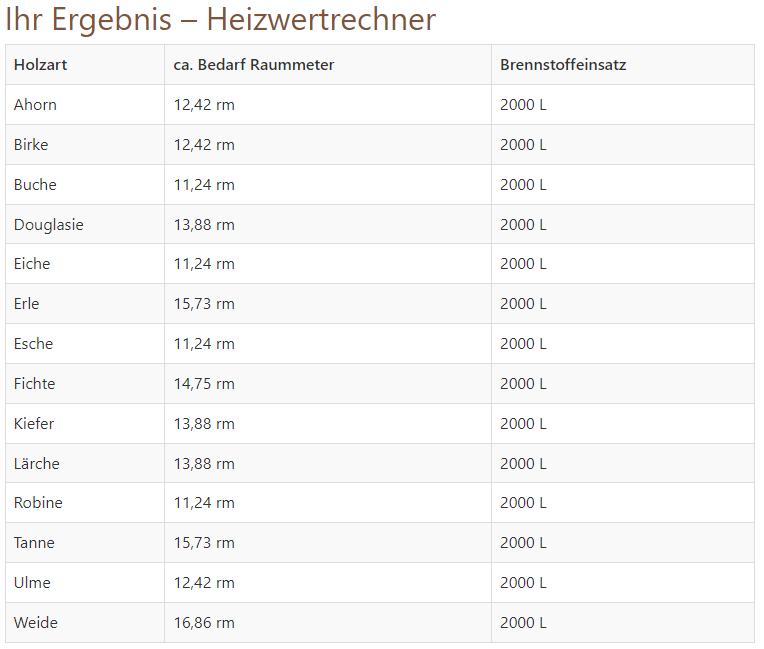 Ich hab für 1 SRM mit Beziehungen allerdings (Fichte und Mischholz, kein Buche) 70 Euronen der SRM...+ Sprit Kosten (sehr gering) aus Wesel angeliefert bekommen. Hier kostet das ansonsten auch um 75 € , Schnittlänge wählbar... Buche kostet hier aber auch bis zu 130€ SRM....wir nehmen immer Mischholz, und legen eben über Nacht bei Bedarf Torf-Briketts auf. Die kriegen wir recht günstig über centershop, weil meine Maus da Fillialleiterin ist und neben dem Firmenrabatt auch immer den "Schrott" günstig erwerben kann.... Auch im neuen Haus werden wir eigentlich nur so beheizen, ein Kaminofen unten, einer auf der ersten Etage. Da wird unser Schlafzimmer sein erstmal nur, und somit da nur geringfügig heizen. Wenn Stieftochter dann mit Enkelkind einziehen sollte, wird da natürlich mehr anfallen.... zur Zeit rechnen wir aber mit 10 SRM+ fürs Jahr und das ist ja günstig...wie gesagt, ich bin eher der friert, Freundin ist da weniger empfindlich....kommt halt aus der Eifel und ich nur aus Tupperwal