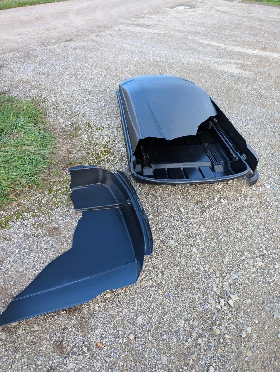 Es ist ein Thule Dachbox, die ich gleich anzünden werde.
