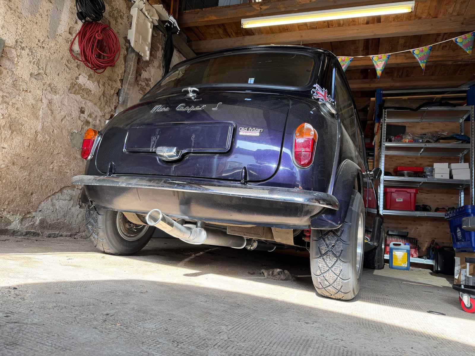 • Gerade auf dem Supermarktparkplatz wieder einen Mini-Experten getroffen. Der hatte früher GENAU den gleichen wie ich, nur mit besseren Blinkern, Trommelbremsen und Triumph Spitfire 1500er Motor. Den hat er damaks auf der Drehbank passend gemacht.