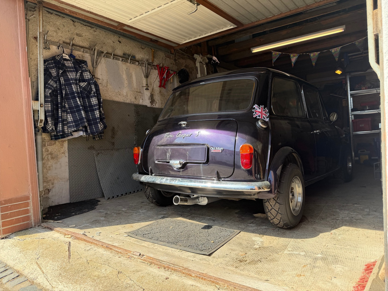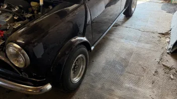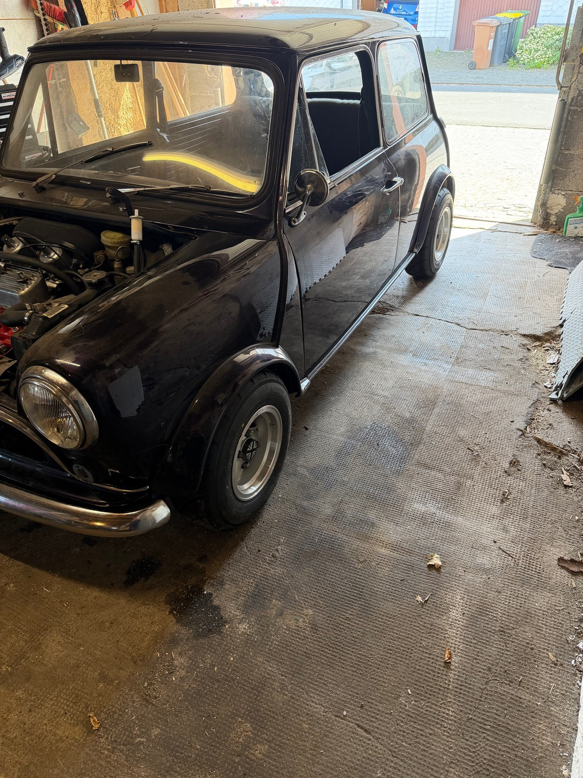 • Gerade auf dem Supermarktparkplatz wieder einen Mini-Experten getroffen. Der hatte früher GENAU den gleichen wie ich, nur mit besseren Blinkern, Trommelbremsen und Triumph Spitfire 1500er Motor. Den hat er damaks auf der Drehbank passend gemacht.