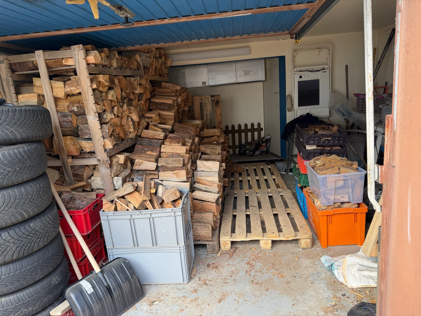 • Noch mal 4 SRM Mischholz bekommen und verräumt. In 3-4 Wochen krieg ich noch mal 4 m Buche vorgetrocknet, was dann vorm Haus gelagert wird.