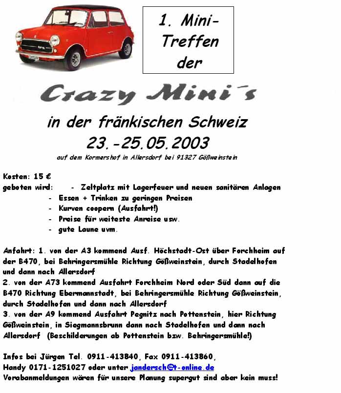 1. Mini-Treffen der Crazy Mini´s - 23.-25.05.2003 in der fränkischen Schweiz