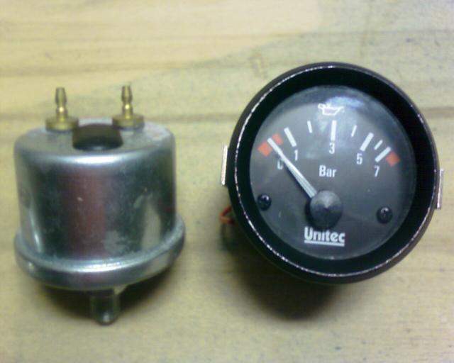 verkaufe hier ein Zusatzinstrument für Öldruck von Unitec bis 7bar, sieht aus wie VDO, 52mm Einbaumaß, mit Halteklammer. Leider ohne Lämpchen, die gibts aber überall zu kaufen.