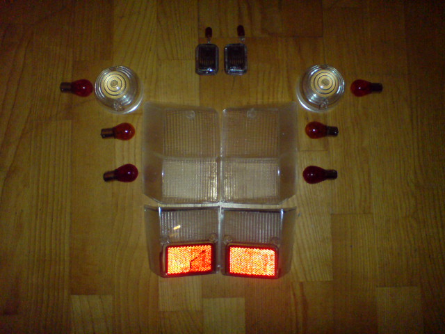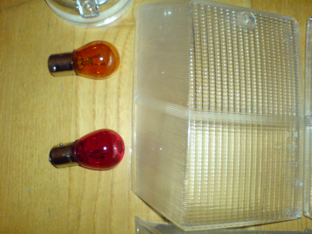 ich verkaufe einen Satz weiße Blinker mit allem drum und dran. D.h.: vordere Blinker in weiß mit gelben Leuchtmitteln, weiße Seitenblinker mit gelben Leuchtmitteln, weiße Rückleuchten mit gelben Blinkerbirnen und roten Brems/Rücklicht Birnchen. Dazu gibts noch die Beiden Rückfahrscheinwerfergläser mit Reflektoren.