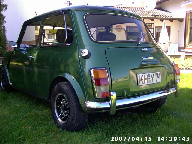 Beschreibung: ich hatte den MINI im Nov. 1978 mit einer Leistung von 10 tkm aus 1. Hand gekauft und nach meinen Vorstellungen umgebaut. Er besitzt folgende Chromteile: Cooper-Grill, Zugstreben, div. Teile im Motorraum, Türöffner und Fensterkurbeln. Der MINI hat ein Holzarmaturenbrett von ROKEE mit den passenden Leisten in den Türen und hinteren Seiten, ebenso ein passendes Holz-Chromlenkrad. Die 5 ATS-Classic-Felgen sind in einem absolut super Zustand mit 165er Falken, Scheibenbremsanlage vom INNOCENTI Cooper, negativer Sturz. Das Vinyldach ist original bei diesem Modell und ohne Beschädigung. Die Lederinnenausstattung mit Schalensitzen, passender Rückbank sowie Tür- und Seitenverkleidungen stammt von der Fa. DGH aus Hameln. Chromstoßstangen mit den dazu gehörenden Hörnern runden das Gesamtbild ab. Der MINI stammt aus meiner privaten Sammlung und wurde definitiv noch nie im Winter gefahren. Es ist ein Liebhaberstück und er sollte auch in Liebhaberhände kommen. Weitere Fotos auf Anfrage.