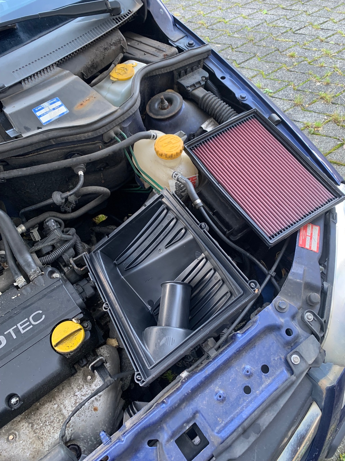 Gleich mal beim Corsa die Bakterie ausbauen und bis morgen ans Ladegerät hängen. Gerade schon die Sommerschluppen eingesammelt. Plan für morgen: Corsa in Garage holen, Bremse vorne erneuern (Scheiben + Klötze), Luftfilter umbauen (von offen auf K+N Lufi-Einsatz), Kante Motorhaube entrosten und bei lackieren, Sommerräder aufbauen.