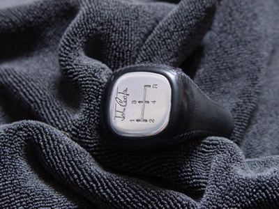 - Schwarzer Lederschalthebel mit gravierter „John Cooper“-Signatur (Partnr.: MCC 546)