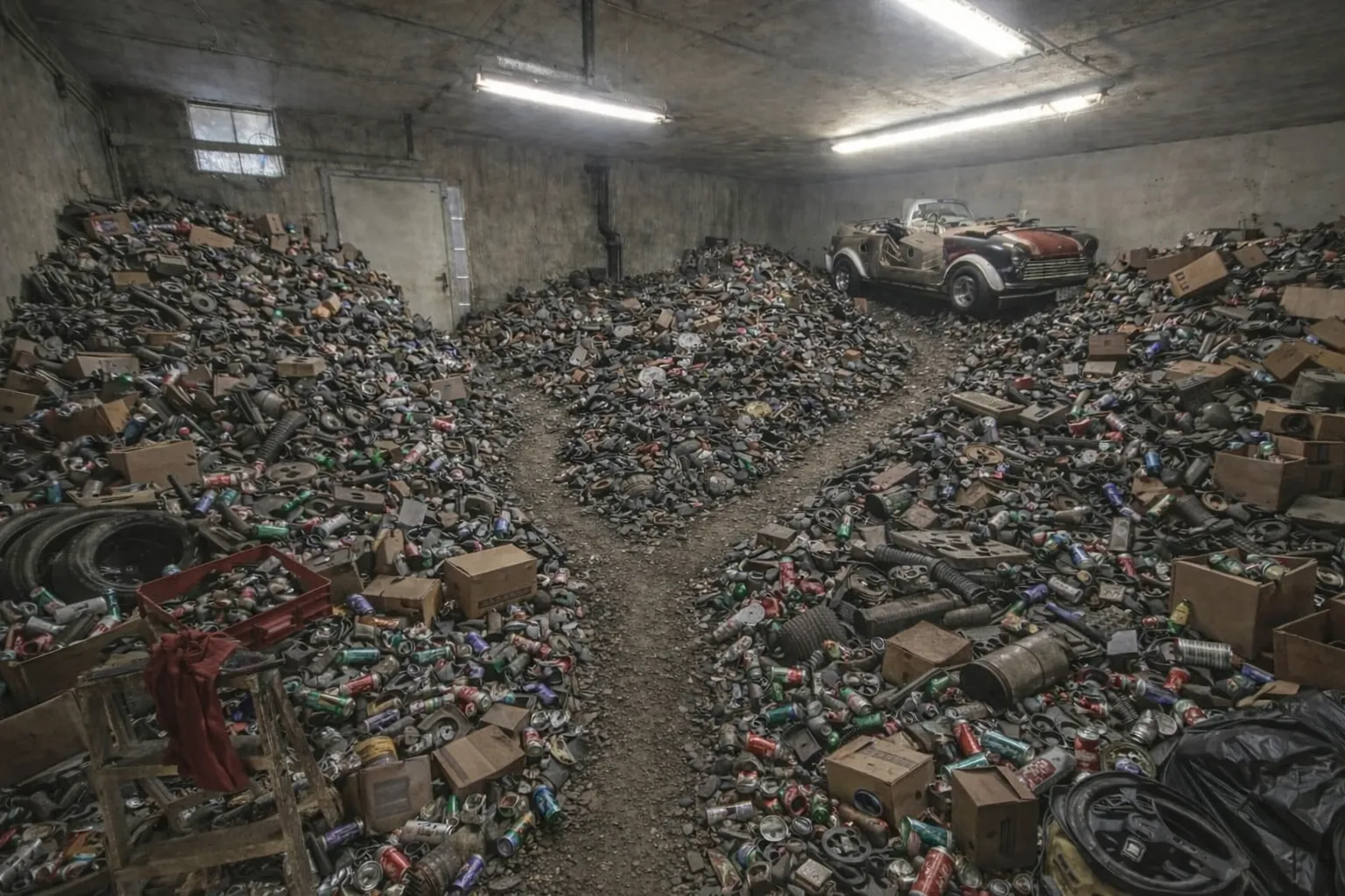 Da müssen mehr leere Karton,s in,s Bild und leere Flaschen/coladosen...