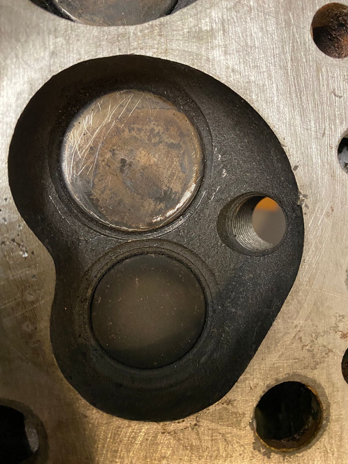 Ventile hat er ca. 30mm Einlass 25mm Auslass mit geänderten Ventilsitzwinkeln, (hat 1971 ein Minihändler der auch Motoren überholte gemacht), Doppelfedern und geschmiedete Kipphebelwelle. Ventile sind sauber und nicht eingeschlagen und nicht bleifrei.