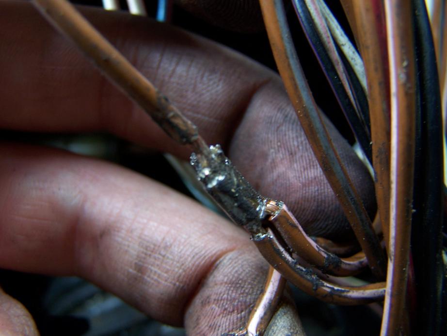 Habe dann folgendes gefunden: (Siehe Bilder, Kabel braun/rosa mit Kabelbruch)