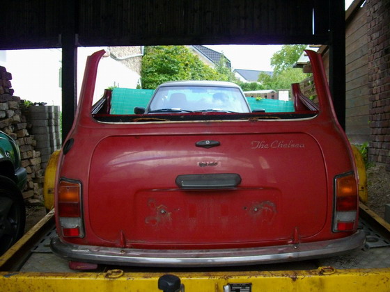 Verkaufe ein Viertel Mini, Sondermodell "The Chelsea" aus eigener Schlachtung. Geeignet zum Umbau als Sofa oder Anhänger. Zustand siehe Bilder. Abholung in Zülpich (53909) im Köln/Bonner Raum. Verhandlungsbasis sind 35,- Euro.