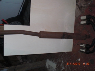 die Auspuffanlage besteht aus dem Mittelrohr und Topf