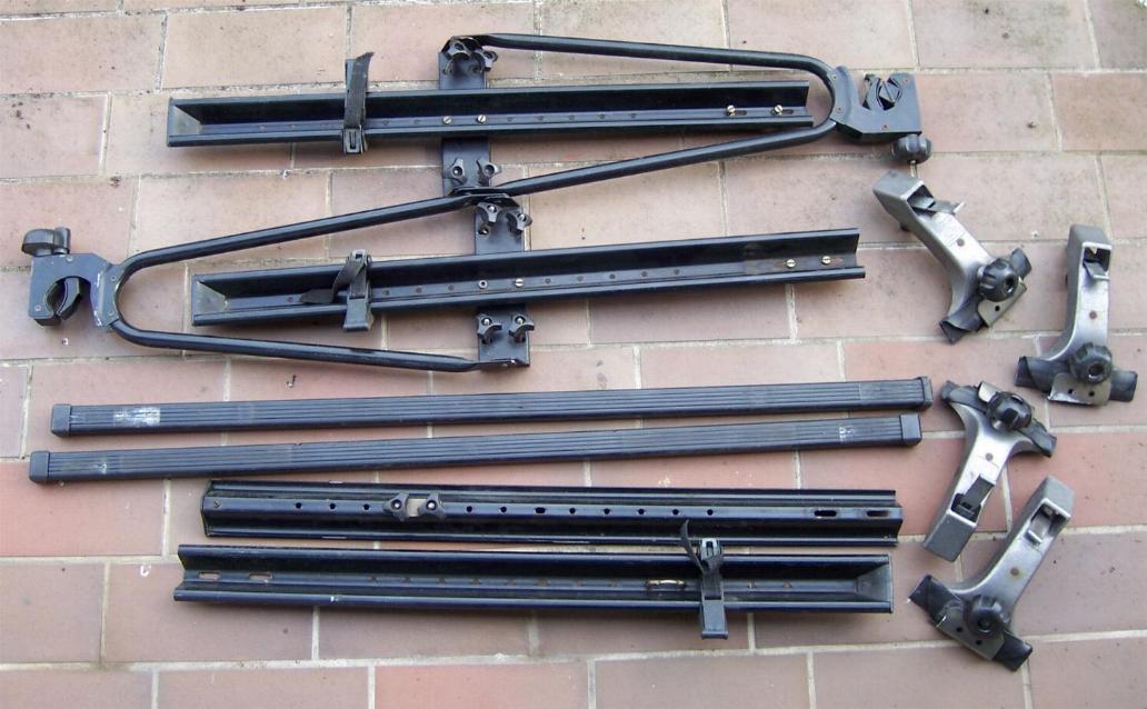 Dachgepäckträger Thule 1050, passend z.B. für Mini, Tragfähigkeit 80 kg, mit 2 Fahrradträgern, da steht drauf Thule 1050-09, Länge der zwei Querträgerschienen etwa 105 cm, Länge der Fahrradträgerschienen etwa 150 cm, komplett, voll funktionstüchtig, Gummis an den vier Haltern alle vorhanden und gut, gebraucht aber guter Zustand, Abholung 35 Euro, inkl. Versand 45 Euro