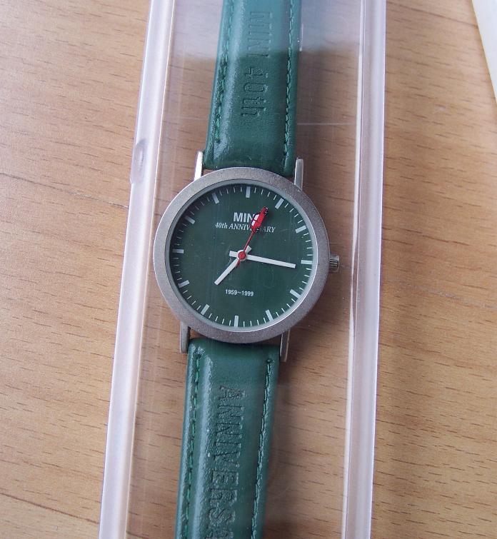 Mini Uhr zum 40. Geburtstag 1999, Lederarmband, grün, Schriftzug im Armband „MINI 40th ANNIVERSARY“, mit rotem Mini am Sekundenzeiger, Uhr ist neu und ungetragen, Batterie leer, verkaufe als defekt da ich nicht weiss ob sie läuft, inkl. Versand 18 Euro