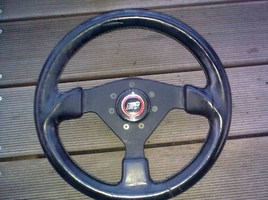 Lenkrad von O.B.A., Durchmessser 33-34 cm, mit Cooper Hupenknopf und Nabe.