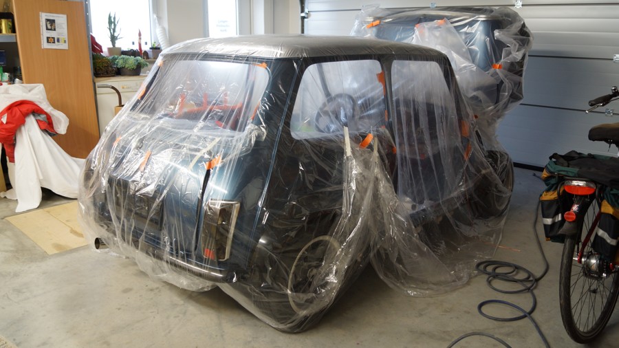 Dachhimmel und Scheiben-/ Türdichtungen montiert.