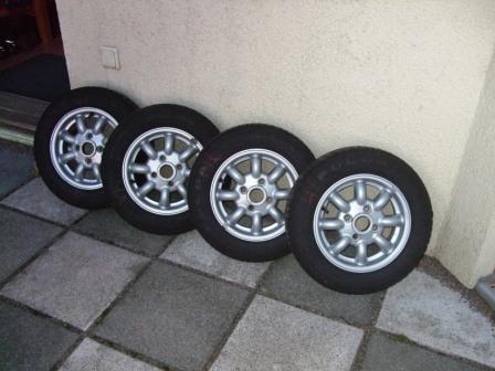 Satz Minilite-Felgen mit Reifen 145/70 R 12 in gutem Zustand.